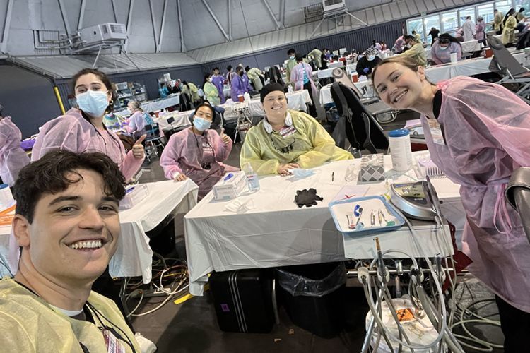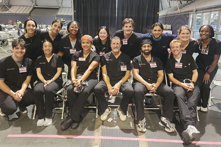 Twenty-eight Dugoni School of Dentistry students and four faculty members from the San Francisco and Sacramento campuses volunteered at the Sacramento Valley Healthcare Clinic organized by California CareForce and held at Cal Expo over the weekend of October 10-12. The goal was to treat patients with varying needs including fillings, extractions, cleanings, x-rays and dentures.