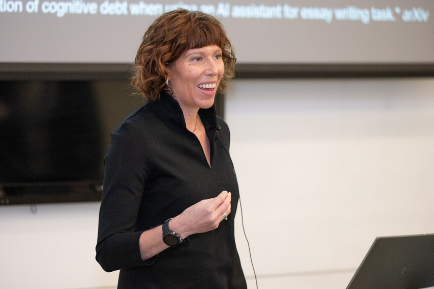 Interim Dean Dr. Elisa Chavez, who also serves as director of the Pacific Center for Equity in Oral Health Care, opened the symposium by challenging attendees to think beyond technology itself. “How can AI be used to better design studies and use the data we collect most effectively,” she asked, “to influence education, patient care and policy in meaningful ways?”